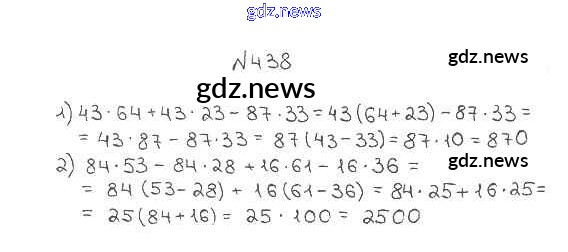 ГДЗ по Математике за 5 класс Мерзляк, Полонский Учебник Алгоритм успеха - §17. Сочетательное и распределительное свойства умножения 438