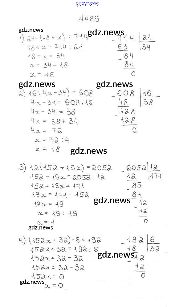ГДЗ по Математике за 5 класс Мерзляк, Полонский Учебник Алгоритм успеха - §18. Деление 489