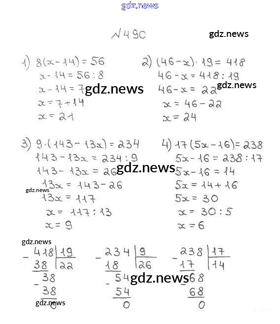 ГДЗ по Математике за 5 класс Мерзляк, Полонский Учебник Алгоритм успеха - §18. Деление 490