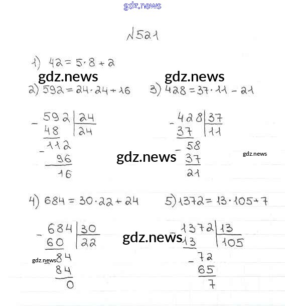 ГДЗ по Математике за 5 класс Мерзляк, Полонский Учебник Алгоритм успеха - §19. Деление с остатком 521