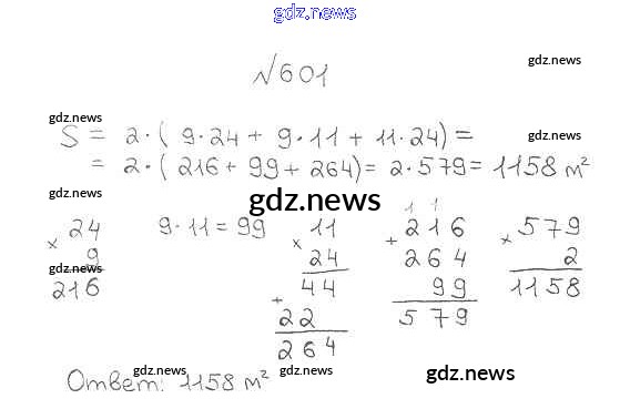 Как эффективно готовиться к домашним заданиям по Математике за 5 класс: лучшие стратегии и советы на gdz.news. Здесь подготовлен Учебник Мерзляк, Полонский, Якир Алгоритм успеха - §22. Прямоугольный параллелепипед. Пирамида 601 и готовые ответы к ним. Сверяй домашку и получай отличные оценки!
