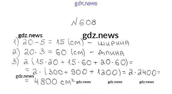 Как эффективно готовиться к домашним заданиям по Математике за 5 класс: лучшие стратегии и советы на gdz.news. Здесь подготовлен Учебник Мерзляк, Полонский, Якир Алгоритм успеха - §22. Прямоугольный параллелепипед. Пирамида 608 и готовые ответы к ним. Сверяй домашку и получай отличные оценки!