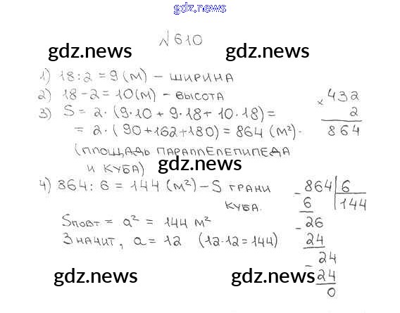 Как эффективно готовиться к домашним заданиям по Математике за 5 класс: лучшие стратегии и советы на gdz.news. Здесь подготовлен Учебник Мерзляк, Полонский, Якир Алгоритм успеха - §22. Прямоугольный параллелепипед. Пирамида 610 и готовые ответы к ним. Сверяй домашку и получай отличные оценки!