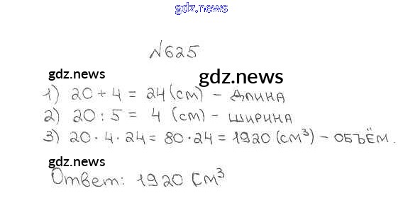 Как эффективно готовиться к домашним заданиям по Математике за 5 класс: лучшие стратегии и советы на gdz.news. Здесь подготовлен Учебник Мерзляк, Полонский, Якир Алгоритм успеха - §23. Объём прямоугольного параллелепипеда 625 и готовые ответы к ним. Сверяй домашку и получай отличные оценки!