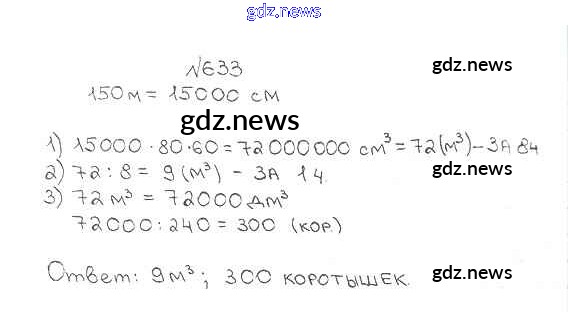 Как эффективно готовиться к домашним заданиям по Математике за 5 класс: лучшие стратегии и советы на gdz.news. Здесь подготовлен Учебник Мерзляк, Полонский, Якир Алгоритм успеха - §23. Объём прямоугольного параллелепипеда 633 и готовые ответы к ним. Сверяй домашку и получай отличные оценки!