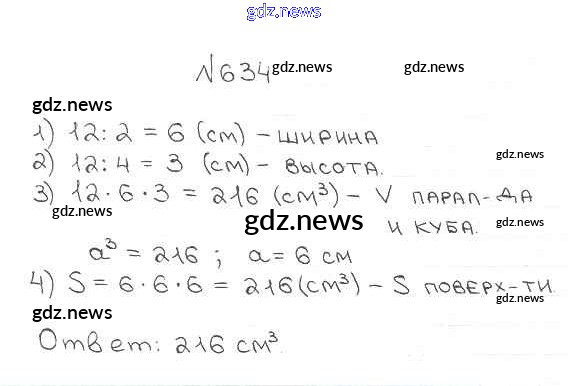 Как эффективно готовиться к домашним заданиям по Математике за 5 класс: лучшие стратегии и советы на gdz.news. Здесь подготовлен Учебник Мерзляк, Полонский, Якир Алгоритм успеха - §23. Объём прямоугольного параллелепипеда 634 и готовые ответы к ним. Сверяй домашку и получай отличные оценки!