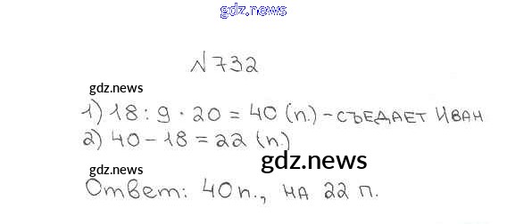 Как эффективно готовиться к домашним заданиям по Математике за 5 класс: лучшие стратегии и советы на gdz.news. Здесь подготовлен Учебник Мерзляк, Полонский, Якир Алгоритм успеха - §26. Правильные и неправильные дроби. Сравнение дробей 732 и готовые ответы к ним. Сверяй домашку и получай отличные оценки!