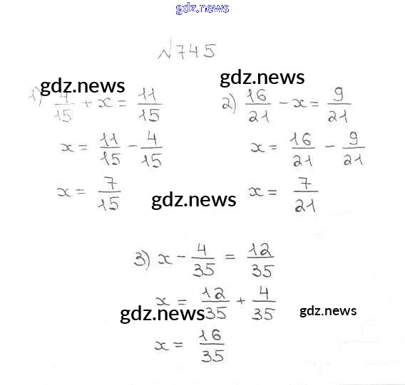 Как эффективно готовиться к домашним заданиям по Математике за 5 класс: лучшие стратегии и советы на gdz.news. Здесь подготовлен Учебник Мерзляк, Полонский, Якир Алгоритм успеха - §27. Сложение и вычитание дробей с одинаковыми знаменателями 745 и готовые ответы к ним. Сверяй домашку и получай отличные оценки!