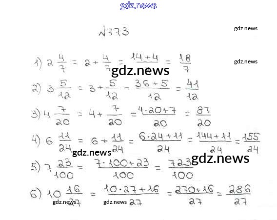 Как эффективно готовиться к домашним заданиям по Математике за 5 класс: лучшие стратегии и советы на gdz.news. Здесь подготовлен Учебник Мерзляк, Полонский, Якир Алгоритм успеха - §29. Смешанные числа 773 и готовые ответы к ним. Сверяй домашку и получай отличные оценки!