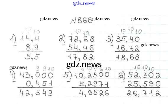 Как эффективно готовиться к домашним заданиям по Математике за 5 класс: лучшие стратегии и советы на gdz.news. Здесь подготовлен Учебник Мерзляк, Полонский, Якир Алгоритм успеха - §33. Сложение и вычитание десятичных дробей 866 и готовые ответы к ним. Сверяй домашку и получай отличные оценки!