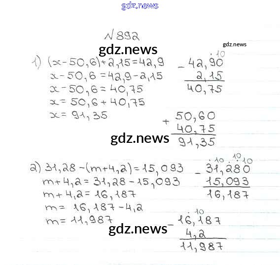 Как эффективно готовиться к домашним заданиям по Математике за 5 класс: лучшие стратегии и советы на gdz.news. Здесь подготовлен Учебник Мерзляк, Полонский, Якир Алгоритм успеха - §33. Сложение и вычитание десятичных дробей 892 и готовые ответы к ним. Сверяй домашку и получай отличные оценки!