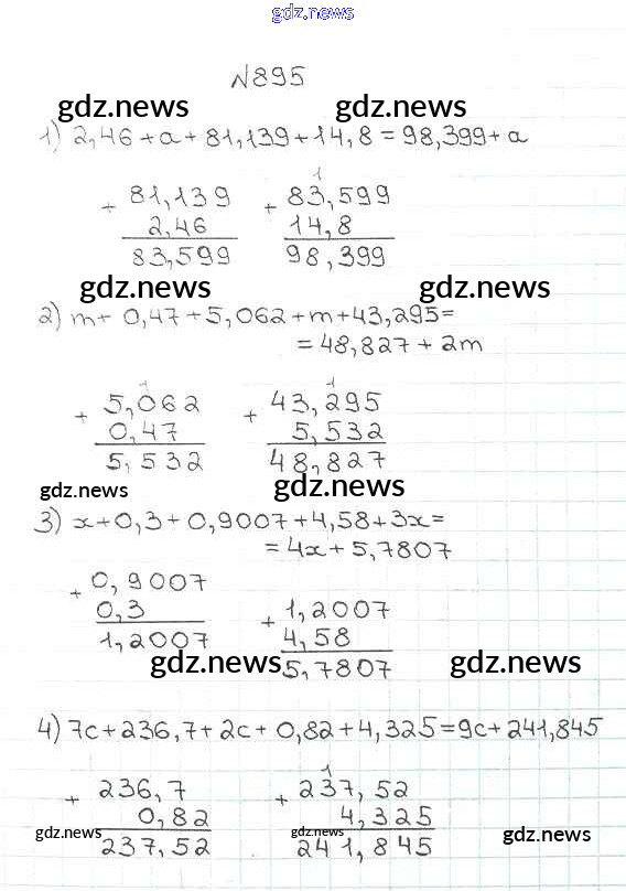 Как эффективно готовиться к домашним заданиям по Математике за 5 класс: лучшие стратегии и советы на gdz.news. Здесь подготовлен Учебник Мерзляк, Полонский, Якир Алгоритм успеха - §33. Сложение и вычитание десятичных дробей 895 и готовые ответы к ним. Сверяй домашку и получай отличные оценки!