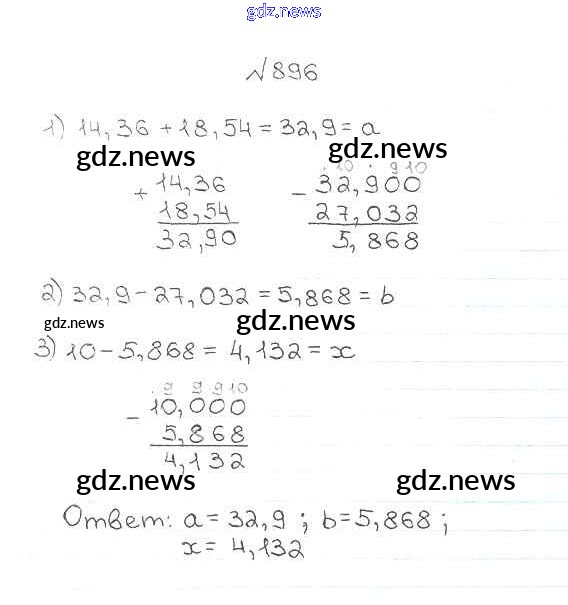 Как эффективно готовиться к домашним заданиям по Математике за 5 класс: лучшие стратегии и советы на gdz.news. Здесь подготовлен Учебник Мерзляк, Полонский, Якир Алгоритм успеха - §33. Сложение и вычитание десятичных дробей 896 и готовые ответы к ним. Сверяй домашку и получай отличные оценки!