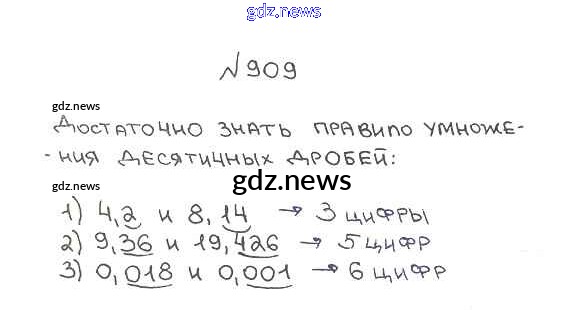 Как эффективно готовиться к домашним заданиям по Математике за 5 класс: лучшие стратегии и советы на gdz.news. Здесь подготовлен Учебник Мерзляк, Полонский, Якир Алгоритм успеха - §34. Умножение десятичных дробей 909 и готовые ответы к ним. Сверяй домашку и получай отличные оценки!
