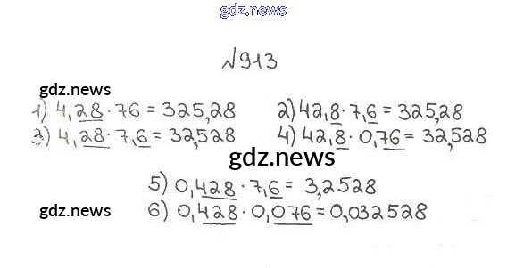 Как эффективно готовиться к домашним заданиям по Математике за 5 класс: лучшие стратегии и советы на gdz.news. Здесь подготовлен Учебник Мерзляк, Полонский, Якир Алгоритм успеха - §34. Умножение десятичных дробей 913 и готовые ответы к ним. Сверяй домашку и получай отличные оценки!