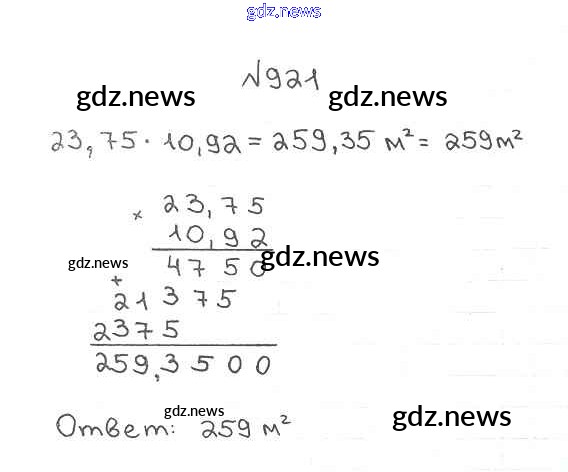 Как эффективно готовиться к домашним заданиям по Математике за 5 класс: лучшие стратегии и советы на gdz.news. Здесь подготовлен Учебник Мерзляк, Полонский, Якир Алгоритм успеха - §34. Умножение десятичных дробей 921 и готовые ответы к ним. Сверяй домашку и получай отличные оценки!