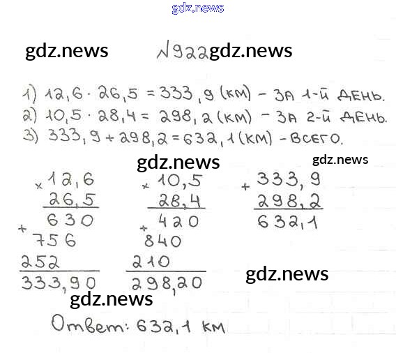 Как эффективно готовиться к домашним заданиям по Математике за 5 класс: лучшие стратегии и советы на gdz.news. Здесь подготовлен Учебник Мерзляк, Полонский, Якир Алгоритм успеха - §34. Умножение десятичных дробей 922 и готовые ответы к ним. Сверяй домашку и получай отличные оценки!