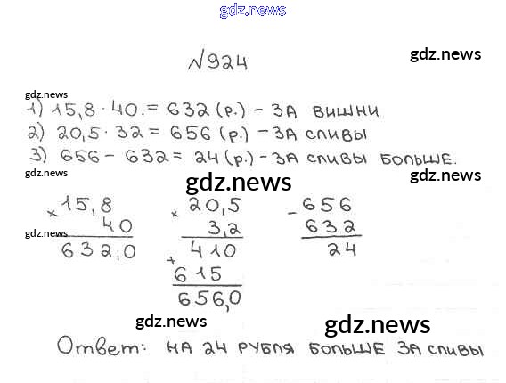 Как эффективно готовиться к домашним заданиям по Математике за 5 класс: лучшие стратегии и советы на gdz.news. Здесь подготовлен Учебник Мерзляк, Полонский, Якир Алгоритм успеха - §34. Умножение десятичных дробей 924 и готовые ответы к ним. Сверяй домашку и получай отличные оценки!
