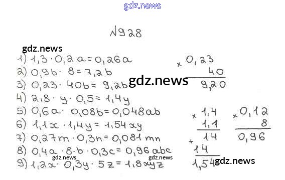 Как эффективно готовиться к домашним заданиям по Математике за 5 класс: лучшие стратегии и советы на gdz.news. Здесь подготовлен Учебник Мерзляк, Полонский, Якир Алгоритм успеха - §34. Умножение десятичных дробей 928 и готовые ответы к ним. Сверяй домашку и получай отличные оценки!