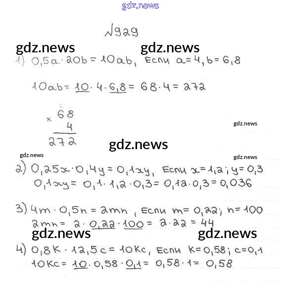 Как эффективно готовиться к домашним заданиям по Математике за 5 класс: лучшие стратегии и советы на gdz.news. Здесь подготовлен Учебник Мерзляк, Полонский, Якир Алгоритм успеха - §34. Умножение десятичных дробей 929 и готовые ответы к ним. Сверяй домашку и получай отличные оценки!