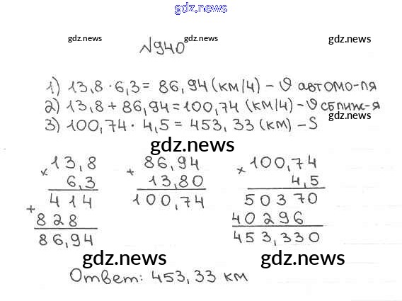 Как эффективно готовиться к домашним заданиям по Математике за 5 класс: лучшие стратегии и советы на gdz.news. Здесь подготовлен Учебник Мерзляк, Полонский, Якир Алгоритм успеха - §34. Умножение десятичных дробей 940 и готовые ответы к ним. Сверяй домашку и получай отличные оценки!