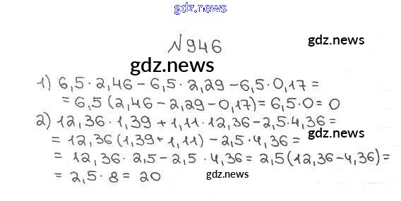 Как эффективно готовиться к домашним заданиям по Математике за 5 класс: лучшие стратегии и советы на gdz.news. Здесь подготовлен Учебник Мерзляк, Полонский, Якир Алгоритм успеха - §34. Умножение десятичных дробей 946 и готовые ответы к ним. Сверяй домашку и получай отличные оценки!