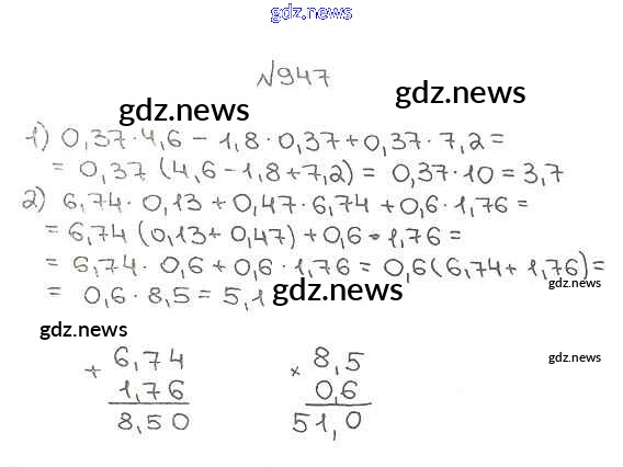 Как эффективно готовиться к домашним заданиям по Математике за 5 класс: лучшие стратегии и советы на gdz.news. Здесь подготовлен Учебник Мерзляк, Полонский, Якир Алгоритм успеха - §34. Умножение десятичных дробей 947 и готовые ответы к ним. Сверяй домашку и получай отличные оценки!