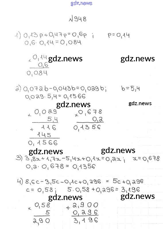 Как эффективно готовиться к домашним заданиям по Математике за 5 класс: лучшие стратегии и советы на gdz.news. Здесь подготовлен Учебник Мерзляк, Полонский, Якир Алгоритм успеха - §34. Умножение десятичных дробей 948 и готовые ответы к ним. Сверяй домашку и получай отличные оценки!