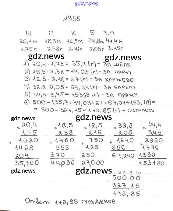 Как эффективно готовиться к домашним заданиям по Математике за 5 класс: лучшие стратегии и советы на gdz.news. Здесь подготовлен Учебник Мерзляк, Полонский, Якир Алгоритм успеха - §34. Умножение десятичных дробей 958 и готовые ответы к ним. Сверяй домашку и получай отличные оценки!