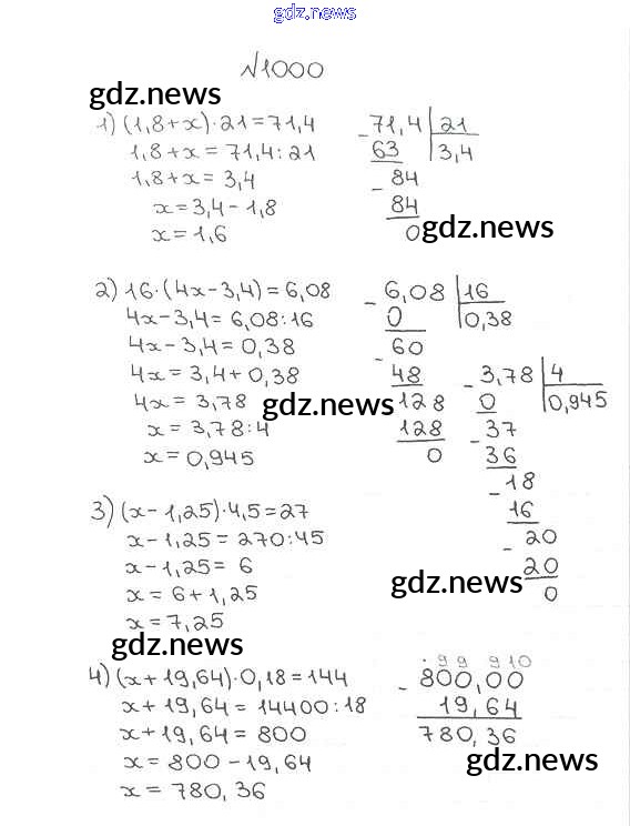 ГДЗ по Математике за 5 класс Мерзляк, Полонский Учебник Алгоритм успеха - §35. Деление десятичных дробей 1000