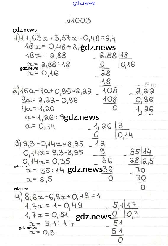 Как эффективно готовиться к домашним заданиям по Математике за 5 класс: лучшие стратегии и советы на gdz.news. Здесь подготовлен Учебник Мерзляк, Полонский, Якир Алгоритм успеха - §35. Деление десятичных дробей 1003 и готовые ответы к ним. Сверяй домашку и получай отличные оценки!