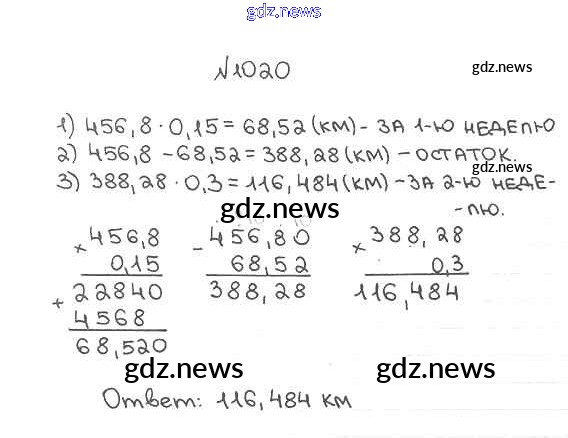 Как эффективно готовиться к домашним заданиям по Математике за 5 класс: лучшие стратегии и советы на gdz.news. Здесь подготовлен Учебник Мерзляк, Полонский, Якир Алгоритм успеха - §35. Деление десятичных дробей 1020 и готовые ответы к ним. Сверяй домашку и получай отличные оценки!