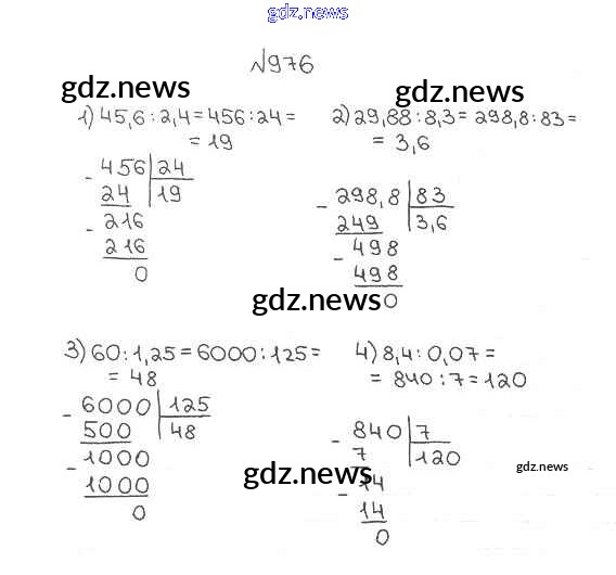 Как эффективно готовиться к домашним заданиям по Математике за 5 класс: лучшие стратегии и советы на gdz.news. Здесь подготовлен Учебник Мерзляк, Полонский, Якир Алгоритм успеха - §35. Деление десятичных дробей 976 и готовые ответы к ним. Сверяй домашку и получай отличные оценки!
