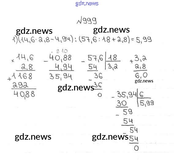 Как эффективно готовиться к домашним заданиям по Математике за 5 класс: лучшие стратегии и советы на gdz.news. Здесь подготовлен Учебник Мерзляк, Полонский, Якир Алгоритм успеха - §35. Деление десятичных дробей 999 и готовые ответы к ним. Сверяй домашку и получай отличные оценки!