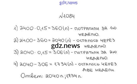 ГДЗ по Математике за 5 класс Мерзляк, Полонский Учебник Алгоритм успеха - §37. Проценты. Нахождение процентов от числа 1084