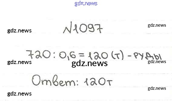 Как эффективно готовиться к домашним заданиям по Математике за 5 класс: лучшие стратегии и советы на gdz.news. Здесь подготовлен Учебник Мерзляк, Полонский, Якир Алгоритм успеха - §38. Нахождение числа по его процентам 1097 и готовые ответы к ним. Сверяй домашку и получай отличные оценки!