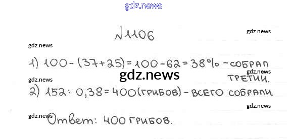 ГДЗ по Математике за 5 класс Мерзляк, Полонский Учебник Алгоритм успеха - §38. Нахождение числа по его процентам 1106