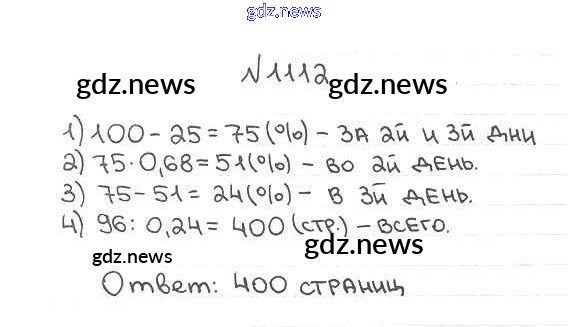 Как эффективно готовиться к домашним заданиям по Математике за 5 класс: лучшие стратегии и советы на gdz.news. Здесь подготовлен Учебник Мерзляк, Полонский, Якир Алгоритм успеха - §38. Нахождение числа по его процентам 1112 и готовые ответы к ним. Сверяй домашку и получай отличные оценки!