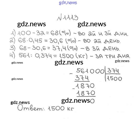 Как эффективно готовиться к домашним заданиям по Математике за 5 класс: лучшие стратегии и советы на gdz.news. Здесь подготовлен Учебник Мерзляк, Полонский, Якир Алгоритм успеха - §38. Нахождение числа по его процентам 1113 и готовые ответы к ним. Сверяй домашку и получай отличные оценки!