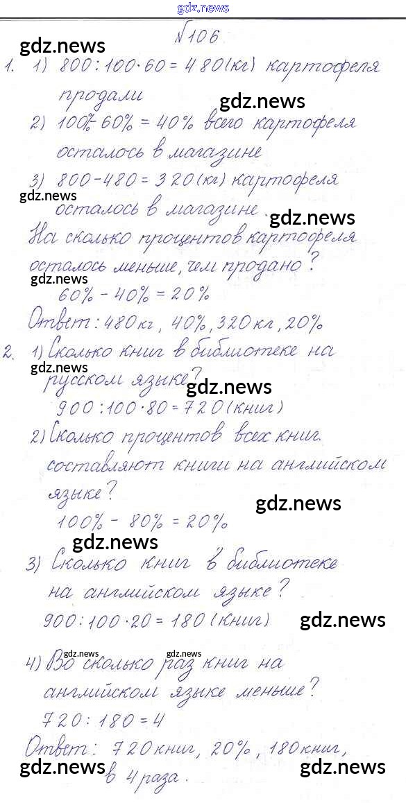 ГДЗ по Математике за 6 класс Дорофеев, Шарыгин Учебник Академический школьный учебник - Упражнения 106