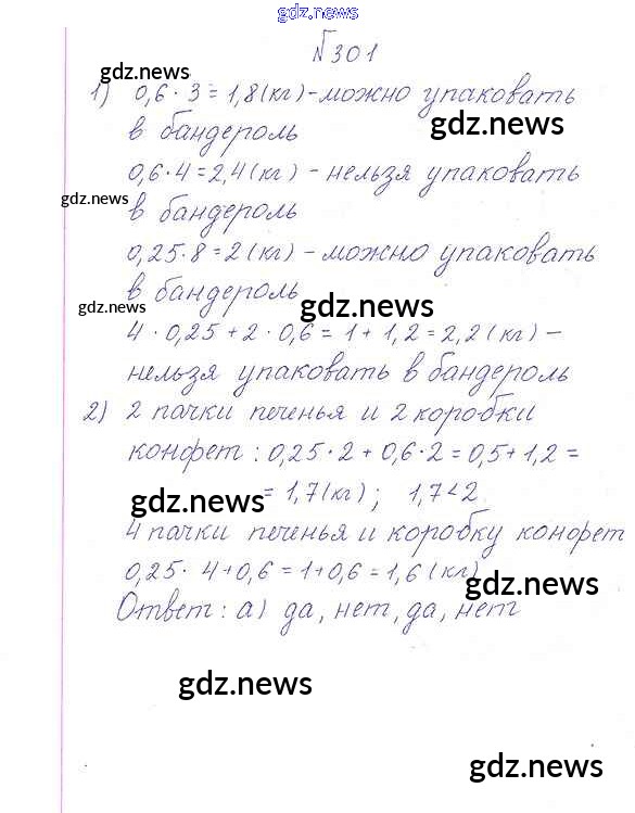 ГДЗ по Математике за 6 класс Дорофеев, Шарыгин Учебник Академический школьный учебник - Упражнения 301
