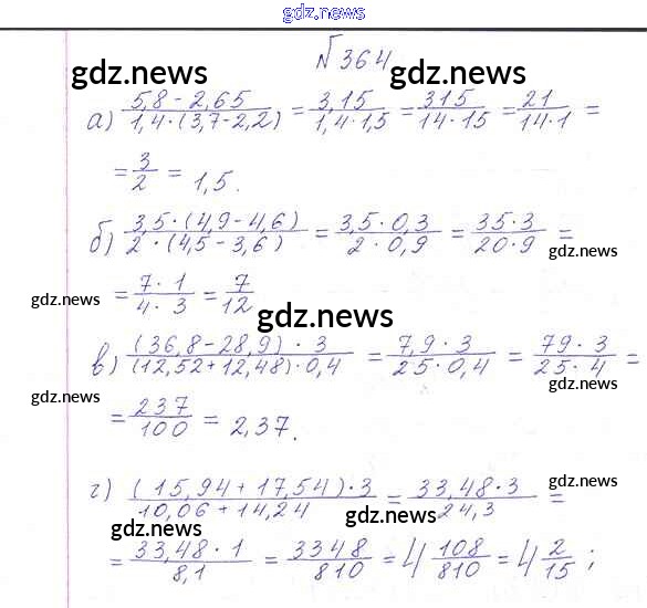 ГДЗ по Математике за 6 класс Дорофеев, Шарыгин Учебник Академический школьный учебник - Упражнения 364