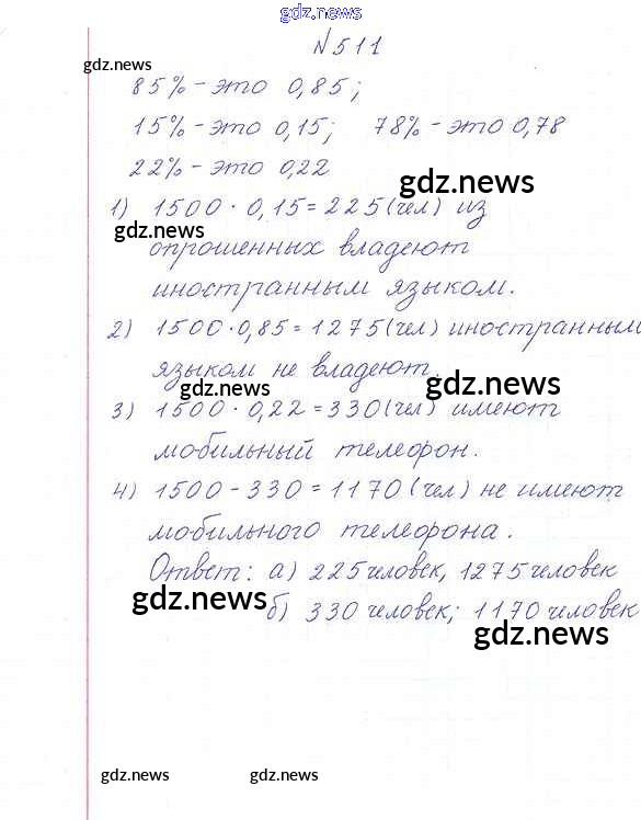 ГДЗ по Математике за 6 класс Дорофеев, Шарыгин Учебник Академический школьный учебник - Упражнения 511