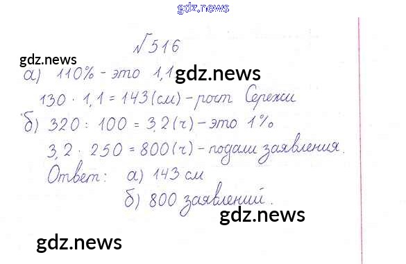 ГДЗ по Математике за 6 класс Дорофеев, Шарыгин Учебник Академический школьный учебник - Упражнения 516