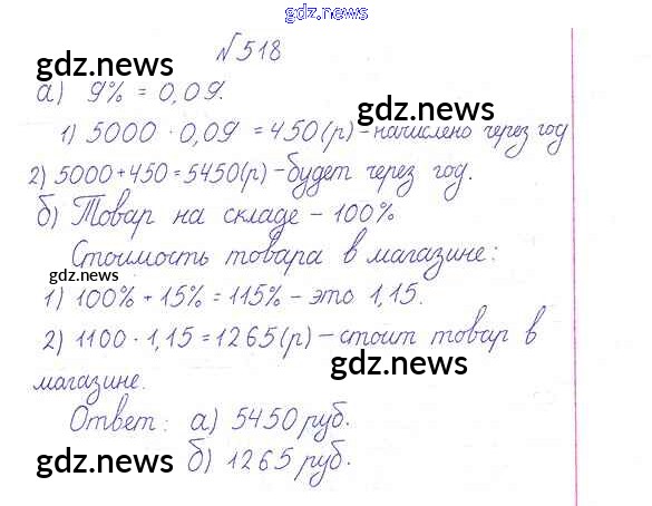 ГДЗ по Математике за 6 класс Дорофеев, Шарыгин Учебник Академический школьный учебник - Упражнения 518