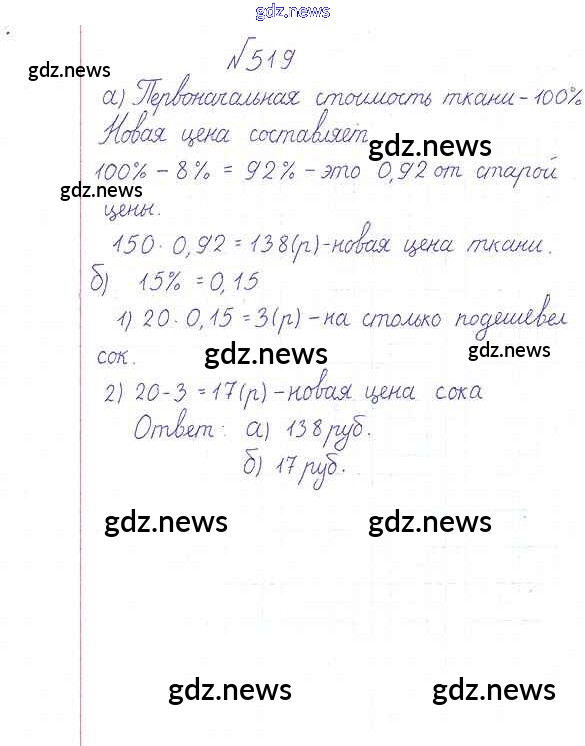 ГДЗ по Математике за 6 класс Дорофеев, Шарыгин Учебник Академический школьный учебник - Упражнения 519