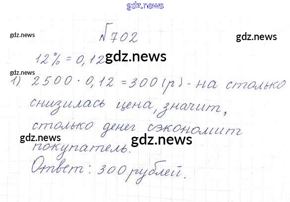 ГДЗ по Математике за 6 класс Дорофеев, Шарыгин Учебник Академический школьный учебник - Упражнения 702