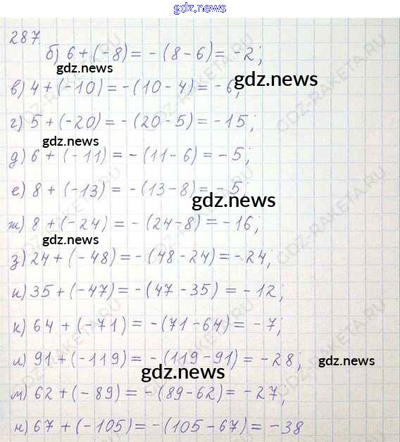 ГДЗ по Математике за 6 класс Никольский, Потапов Учебник МГУ - школе - Глава 2. Целые числа 287