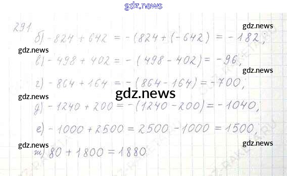 ГДЗ по Математике за 6 класс Никольский, Потапов Учебник МГУ - школе - Глава 2. Целые числа 291