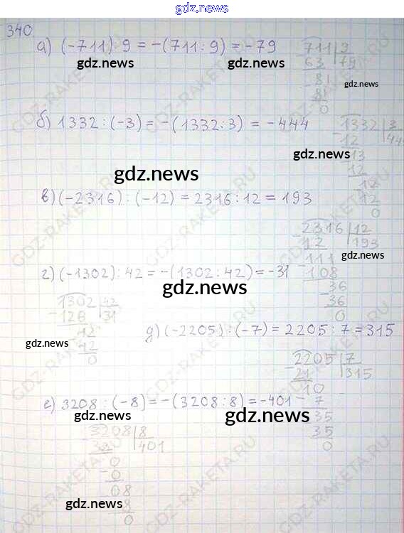 ГДЗ по Математике за 6 класс Никольский, Потапов Учебник МГУ - школе - Глава 2. Целые числа 340